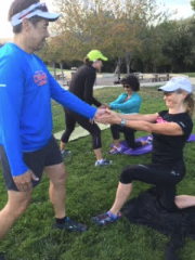 What to do instead: Try doing a Pallof Press which can be done 1/2 kneeling or standing. You can also do these with the TRX suspension trainer or on the Pilates Reformer. Lots of options! Here’s a pic from our Bulletproof Runner Series of 2 runners doing a “partner” pallof press. Don’t they look like they’re having fun? 😉